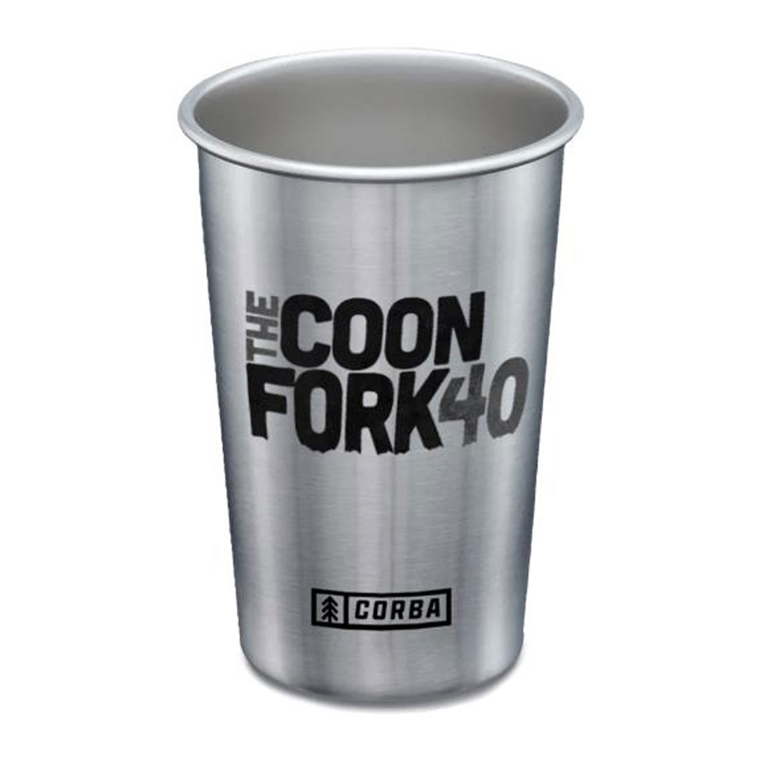High quality stainless steel tumbler of the Coon Fork 40. 12 oz cup.