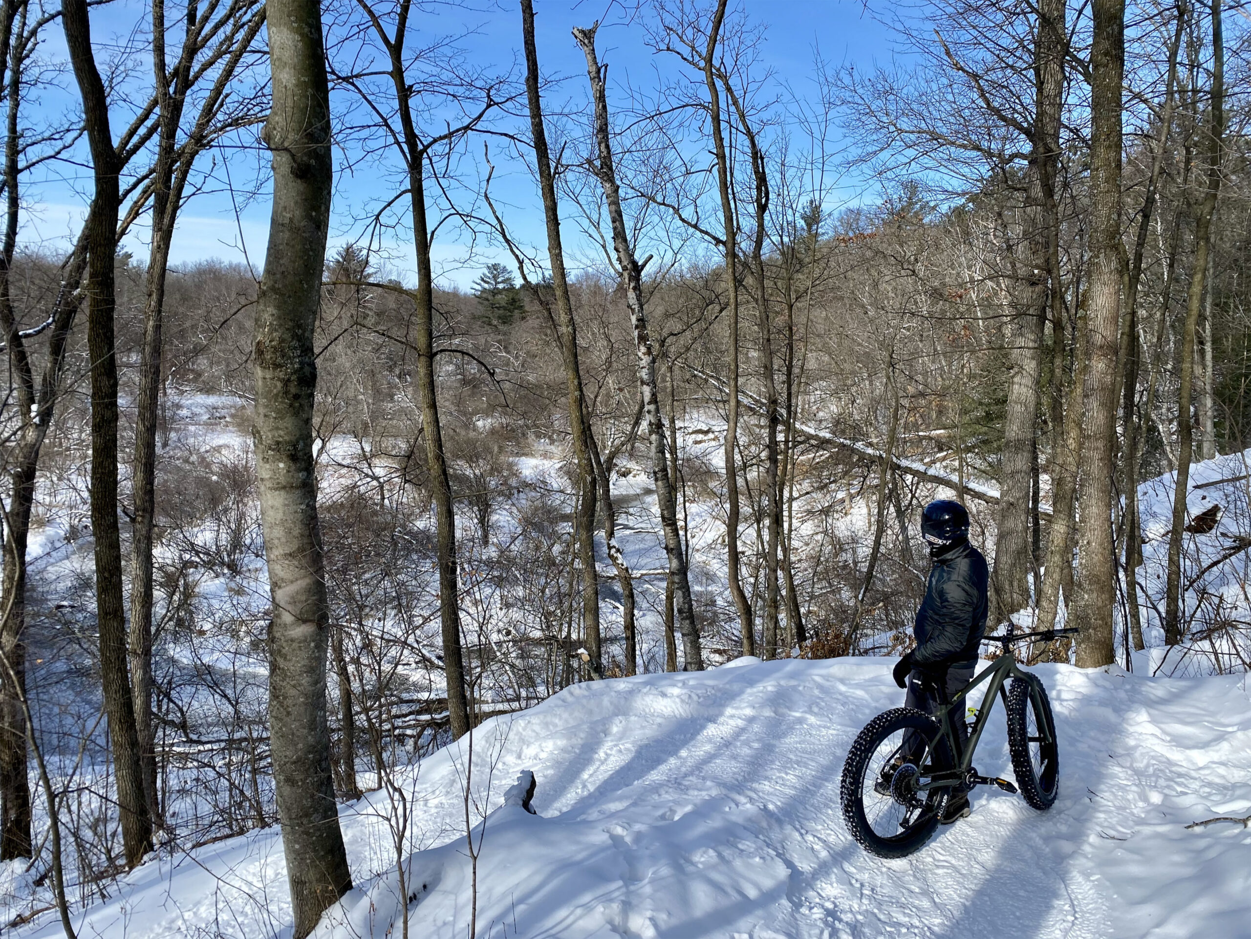 Winter biking: Yes, groomed regularly. Stay on single track and off groomed ski trails.